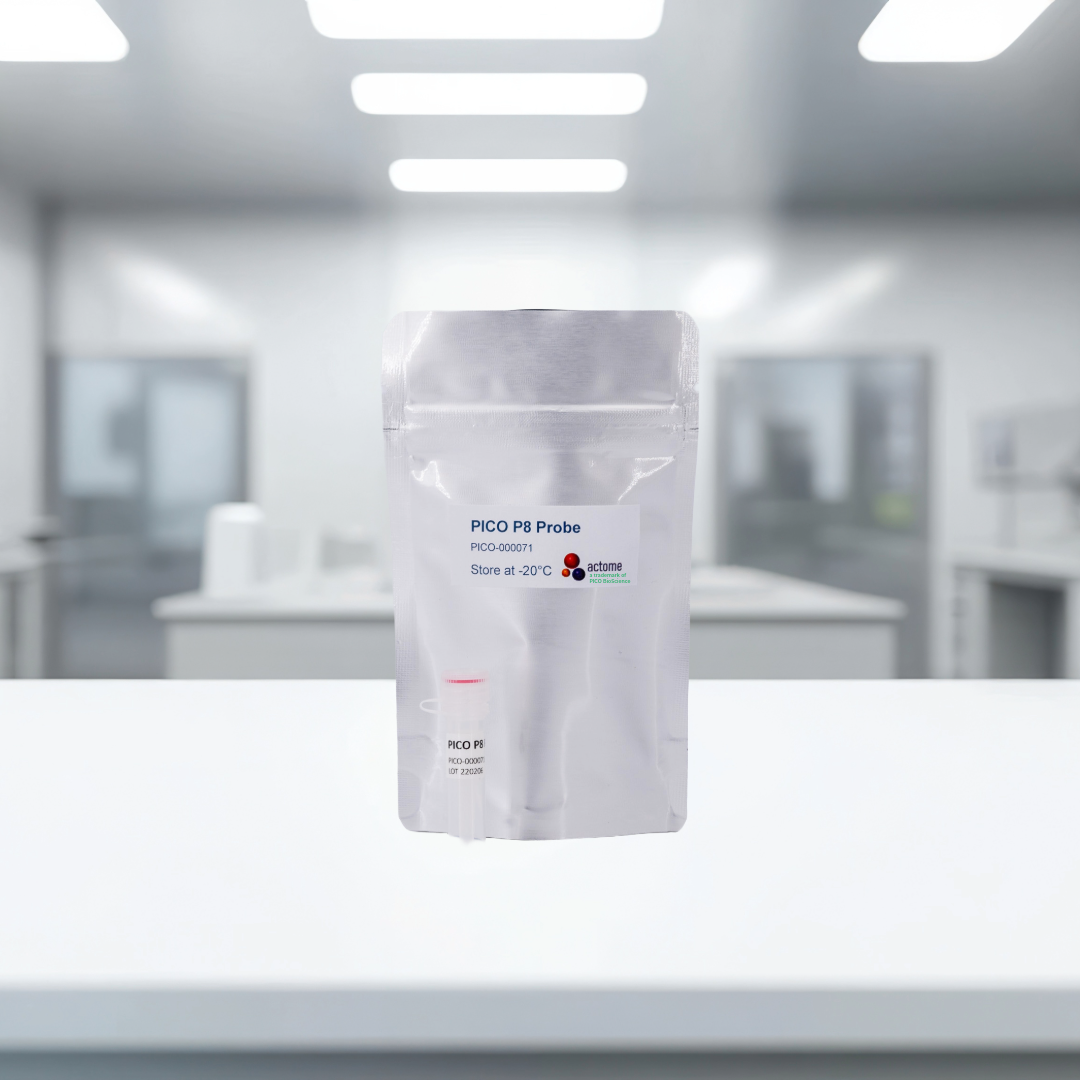The PICO P8 Probe is designed to bind specifically to the PICOglue P8 Label and allows its amplification and subsequent fluorescent signal generation during the dPCR reaction. The PICO P8 Probe is used together with the PICO Amplification Core Kit.